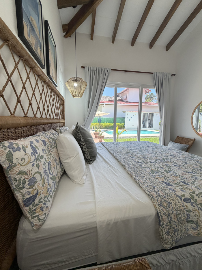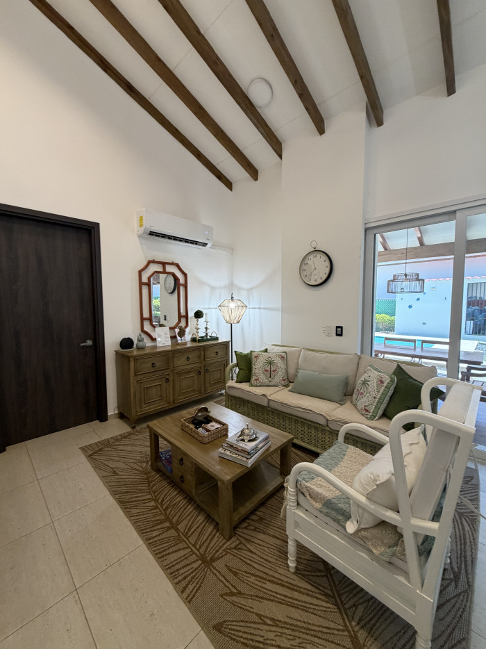 La propiedad destaca por su estilo moderno y funcional, con 3 habitaciones con aires acondicionados, 3 baños completos, sala, comedor y una cocina . En el exterior, cuenta con piscina privada y parqueo para 2 vehículos, creando el espacio perfecto para disfrutar en familia o con amigos.