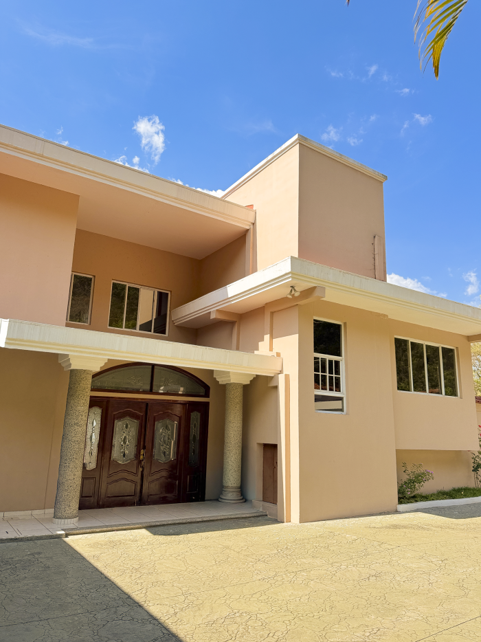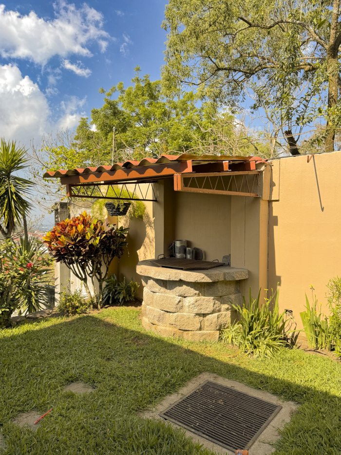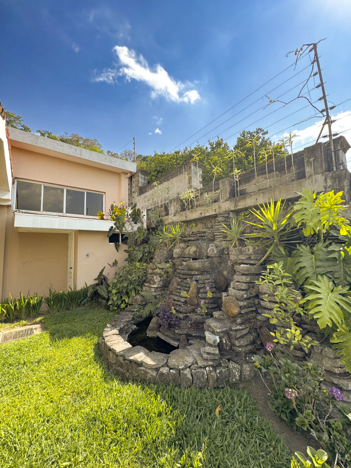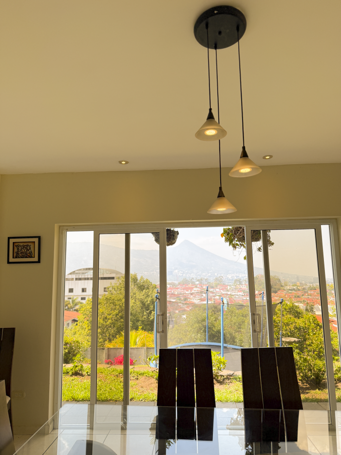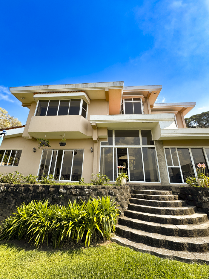 El recorrido a través de sus desniveles conduce a la zona privada, donde se encuentra la habitación máster con sala propia, jacuzzi, walk-in closet y vista al volcán, junto con tres habitaciones adicionales con baño privado y clóset, posee además un estudio independiente, baño social, amplio jardín, área de barbacoa, estacionamiento para 9 vehículos (4 techados) área de lavandería, habitación de servicio y caseta de vigilancia privada. La propiedad cuenta con 523.80 m² de construcción sobre un terreno de 1,825.70 v².