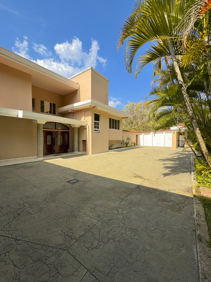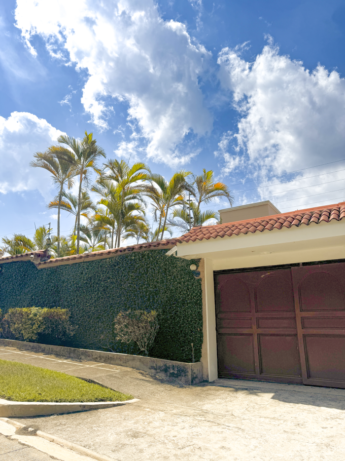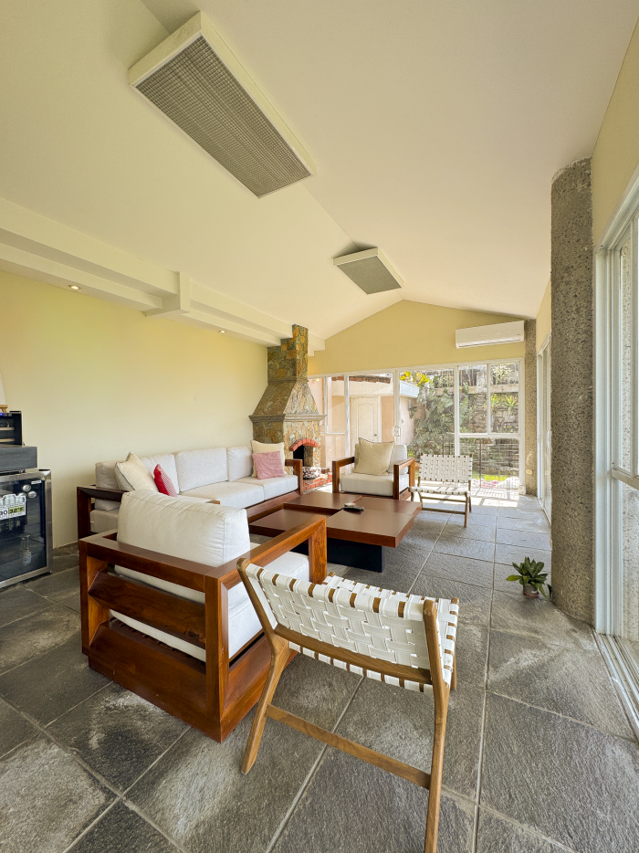 Cuenta también con estudio independiente, baño social, amplio jardín con área de barbacoa, área de lavandería, habitación de servicio y caseta de vigilancia. Dispone de estacionamiento para 9 vehículos (4 techados).