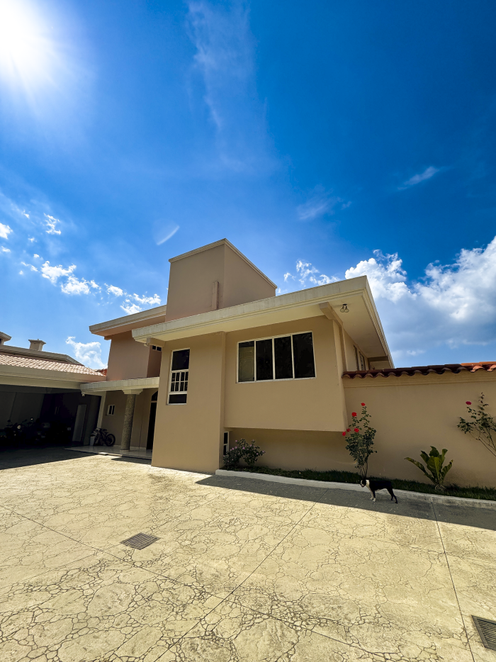 Espectacular casa en venta en Portones de Madreselva, con una impresionante vista al volcán y a la ciudad desde su ingreso. La propiedad ofrece una distribución en desniveles que integra amplia cocina, comedor, dos salas y una terraza panorámica ideal para disfrutar el entorno.