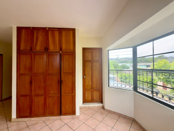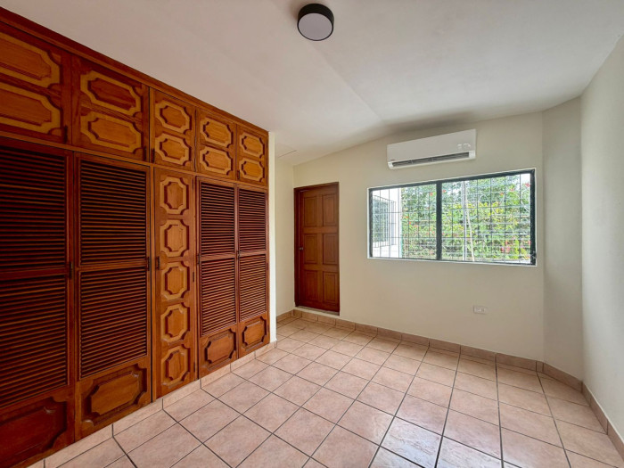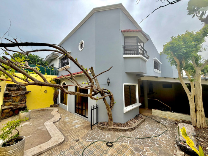 La propiedad ofrece amplios espacios con un terreno de 250 m². Cuenta con 4 habitaciones, una en el primer nivel y 3 en el segundo, cada una con baño completo, aires acondicionados y acabados en madera. Dispone de sala, comedor amplio, estudio, cocina, 5 baños, estacionamiento techado para 2 vehículos, áreas verdes, cisterna, habitación de servicio con baño completo y área de lavandería.