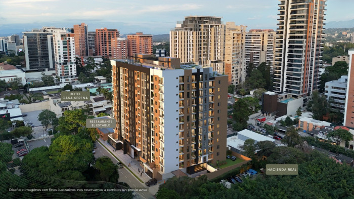 Apartamento en venta en Casa Hacienda, ubicado en la exclusiva Zona 10 de Ciudad de Guatemala, un sector con alta plusvalía y excelente proyección de inversión, con 43.32 m², este moderno Boutique Studio cuenta con 1 habitación, 1 baño, área social y 1 espacio de estacionamiento, ideal para vivienda o rentas de corta estancia.