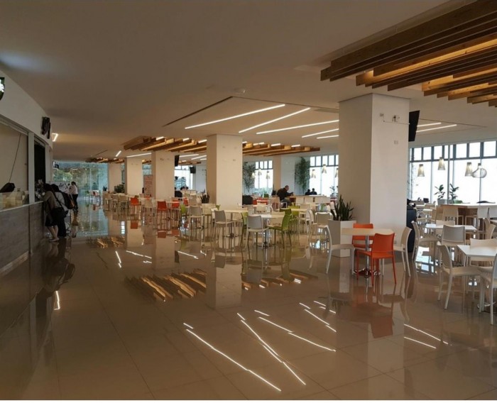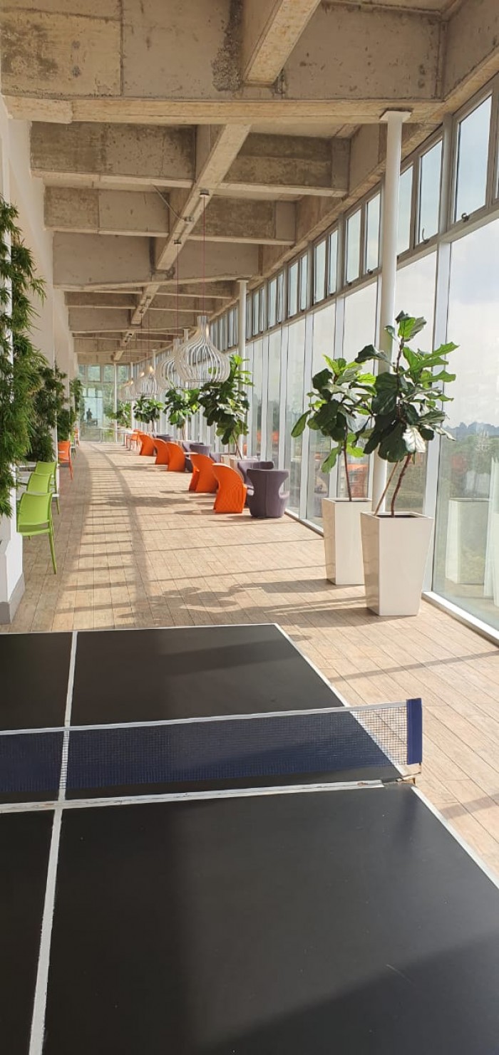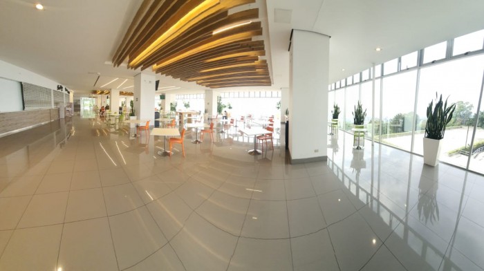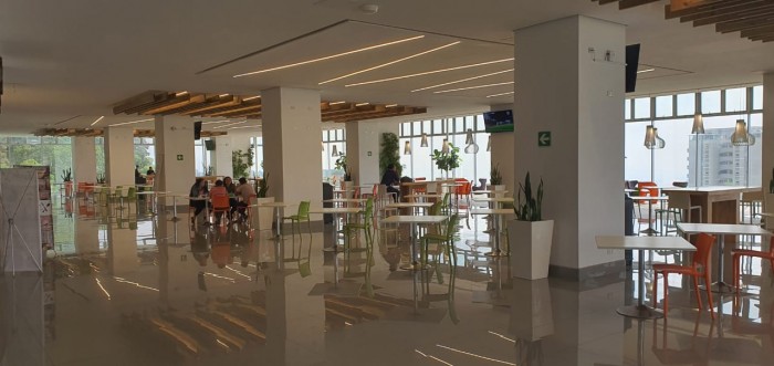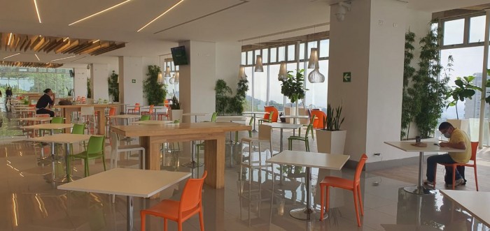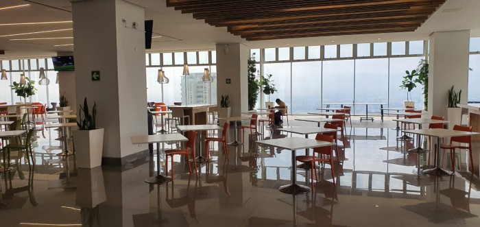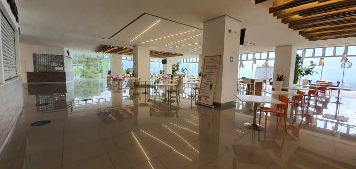 El edificio cuenta con área de lobby y recepción para el ingreso de visitas, 6 elevadores, 2 elevadores para visitas, Foodcourt para 500 personas, 9 restaurantes, tiendas de conveniencias, salón de belleza y peluquería. DECK PANORAMICO PARA EVENTOS
